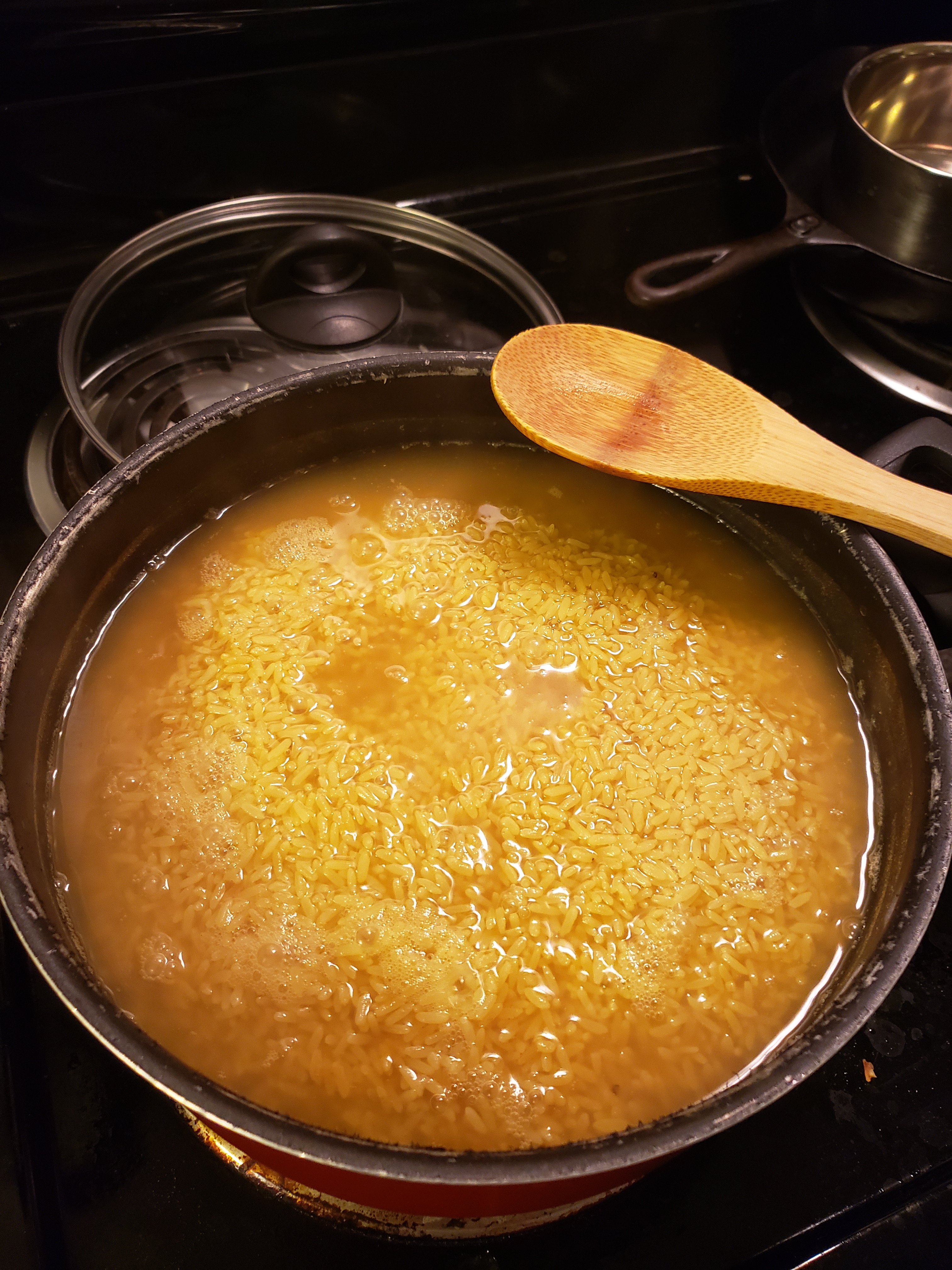 - Wash rice with water and salt until the starch is gone (basically until you can see the rice in the water, good grief that’s a lot of starch).
